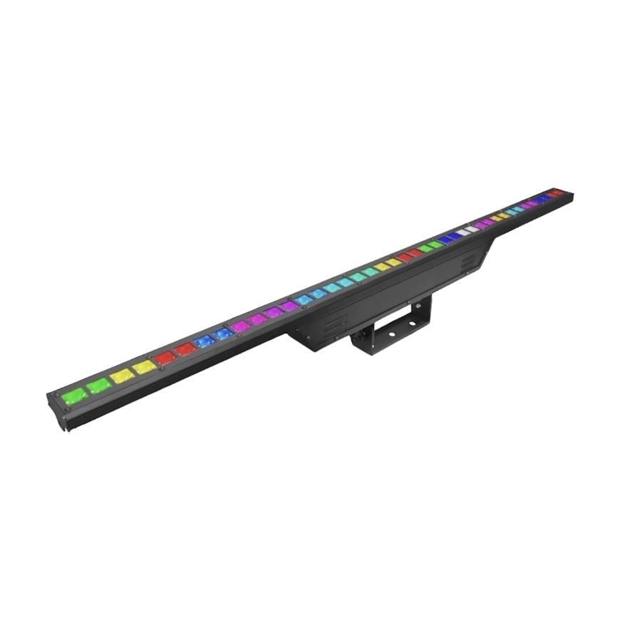 Удачная версия RGB-бара с пиксельным управлением, но при этом не слишком яркими диодами - идеальный вариант для больших завесов с большим количеством приборов, которые будут использоваться скорее как декор, либо для эффектов волн и пиксельных пробежек. Легкий, доступный, с узким углом раскрытия луча - отличный вариант для проката.