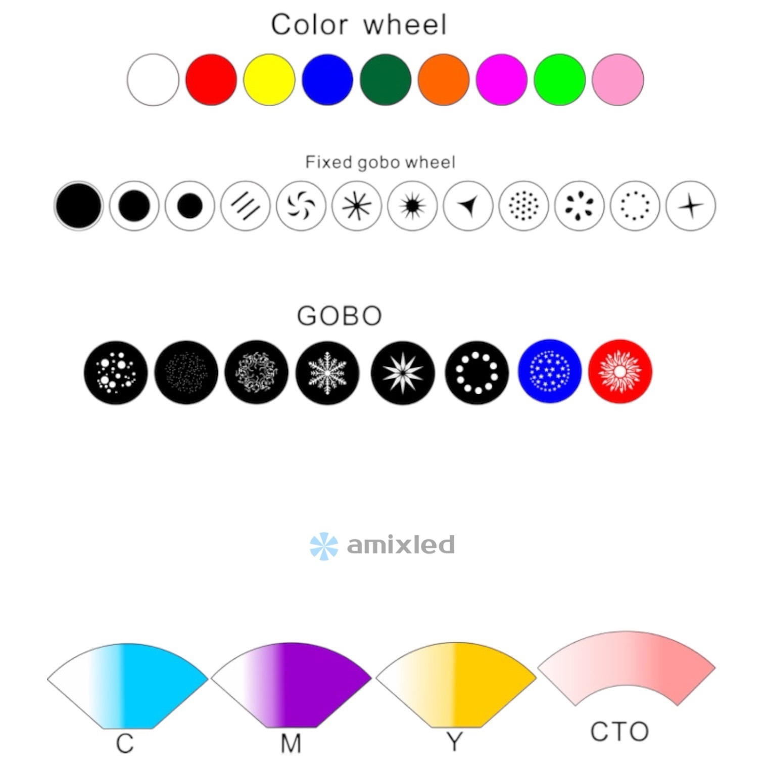 icon4.png   Эффекты: 8 статичных цветов, 10 статичных гобо, 8 вращающихся гобо, призмы: 3-гранная и 5-гранная, режим Frost