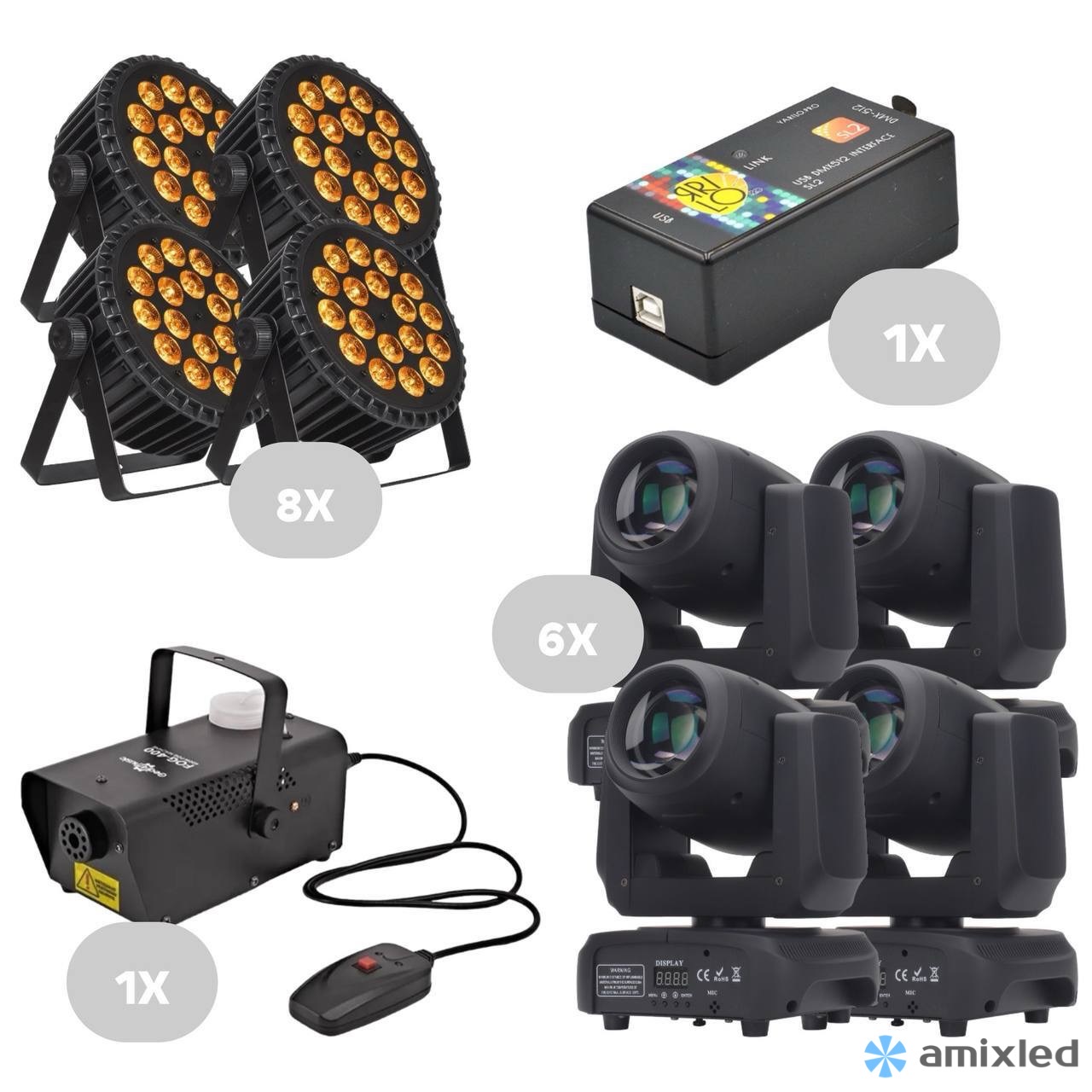 Это универсальный и при этом функциональный комплект, способный закрыть базовые потребности небольшого клуба в сценическом освещении.