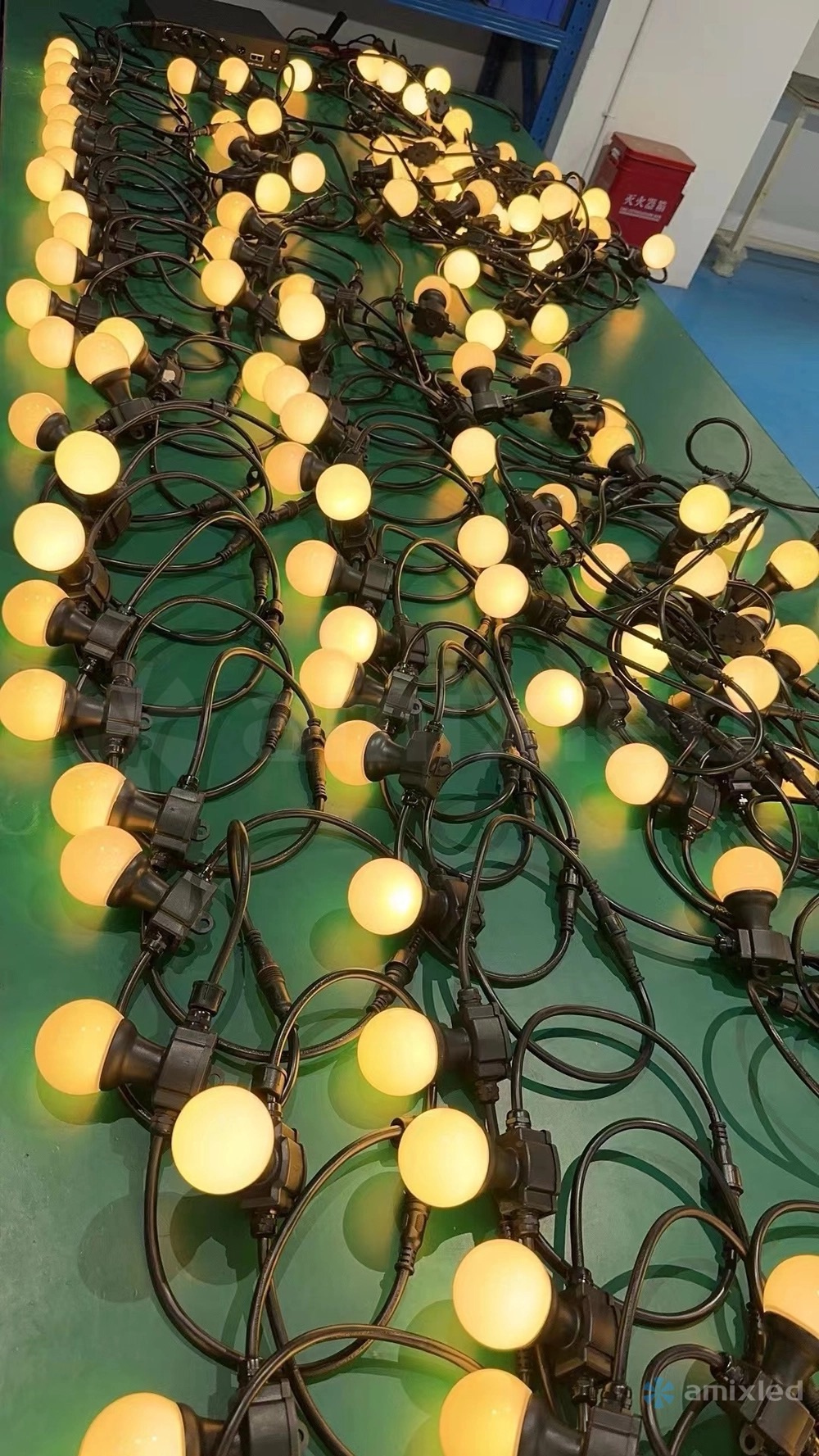 Управляемая по DMX или Art Net гирлянда из 9w светодиодных ламп - впечатляющий элемент декора как для сценического пространства, так и для любого заведения. Можно запрограммировать буквально любые сценарии переливов цветов и димерных эффектов - возможности безграничны.