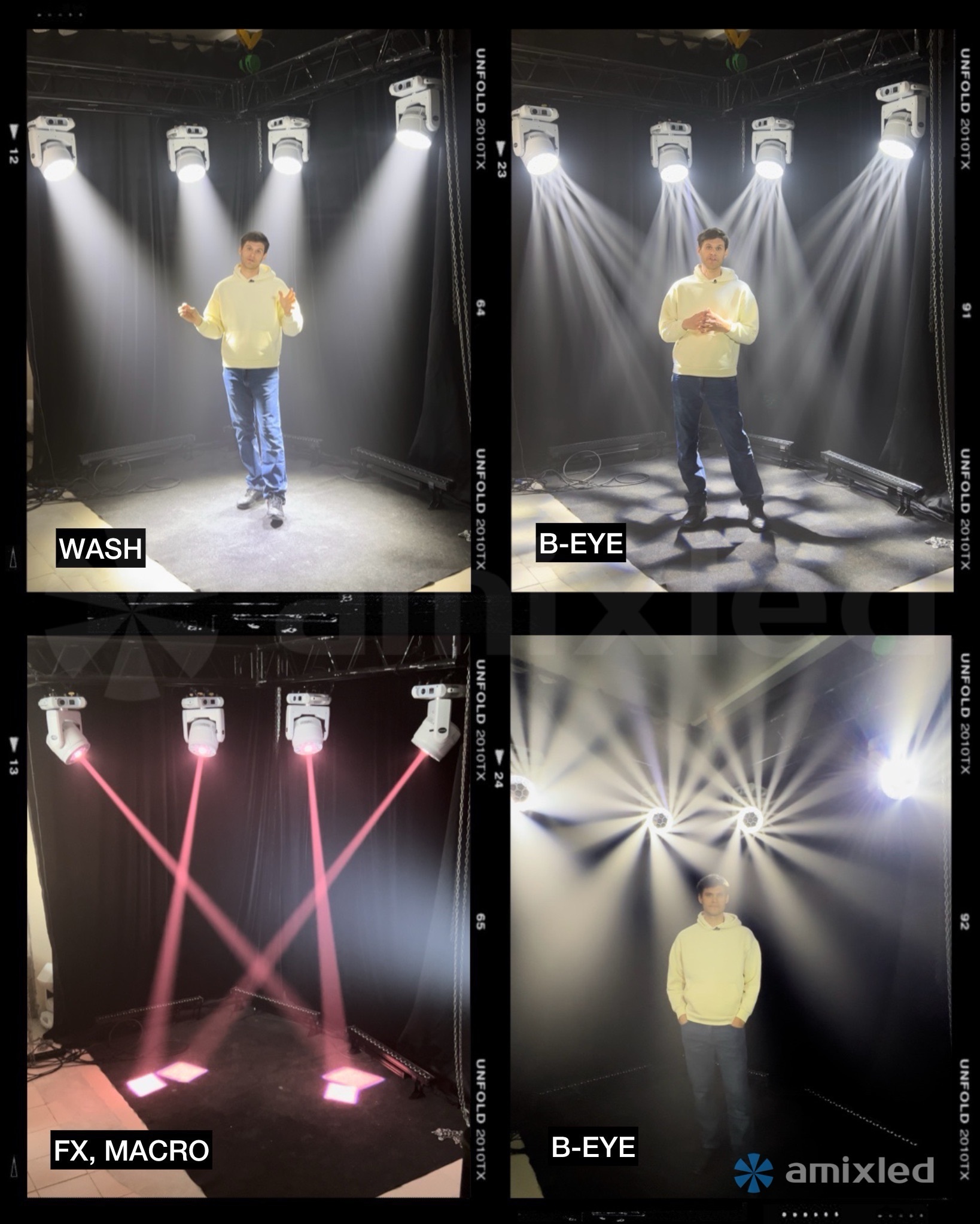 Эффекты, которые имеет световая голова beam и световая голова wash умело сочетаются в данном приборе и при правильной настройке один прибор может заменить оба вышеупомянутых типа.